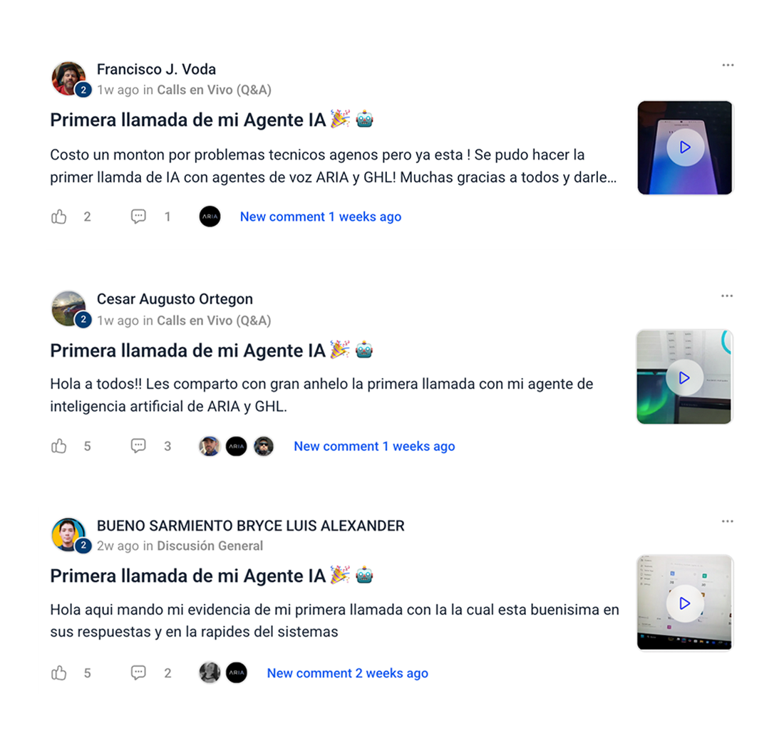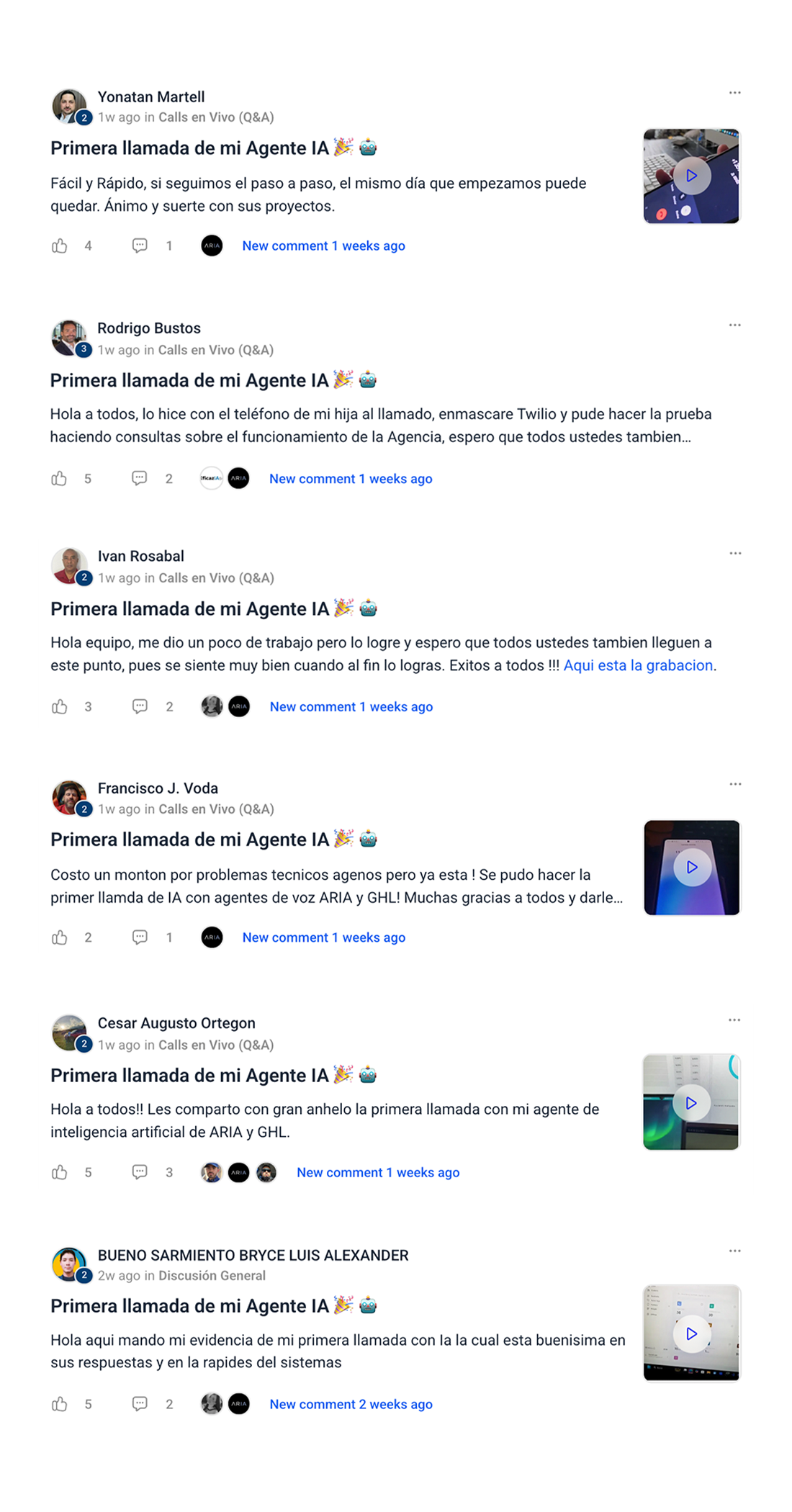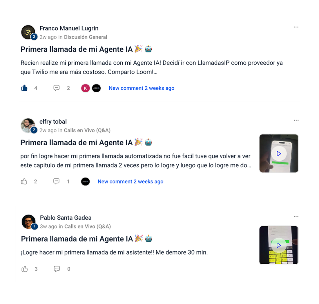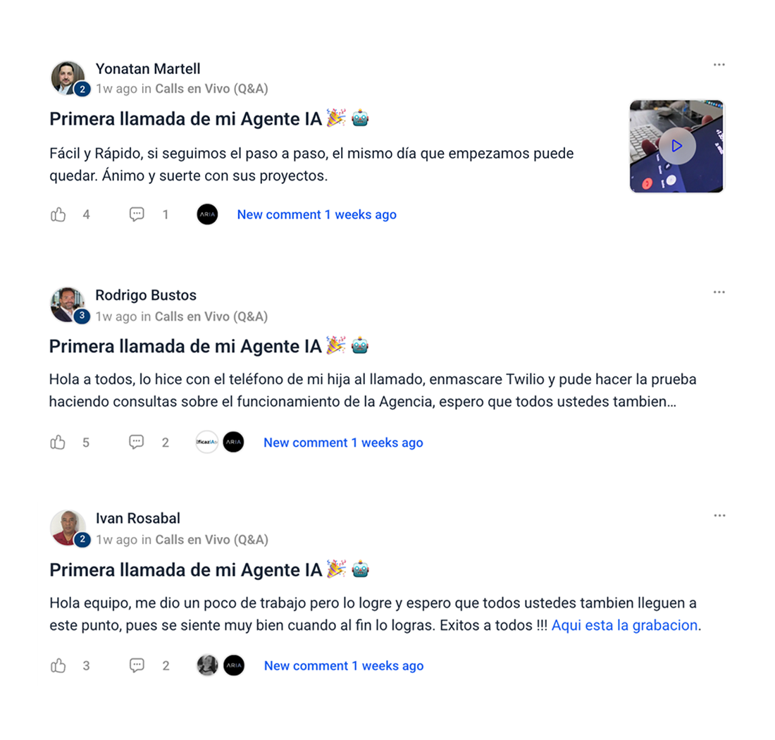 Y esa claridad te la damos con nuestros casos de éxito: personas reales que, como tú, comenzaron desde cero y hoy ya tienen su agencia de IA activa y vendiendo con sus propios agentes.